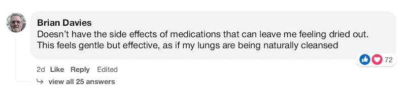 "As someone who smoked since my teens, I didn’t think anything could help my lungs recover. But this formula is different. It’s not just easier breathing — I feel genuinely energised again."